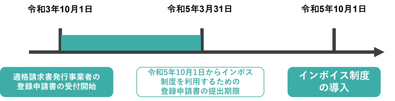 前述の通り、インボイスを発行するためには、適格請求書発行事業者になる必要があります。適格請求書発行事業者の登録申請書を税務署に提出します。インボイス制度は2023年10月1に開始されるため、開始段階で利用するためには、2023年3月31日までに登録申請書を税務署に提出する必要があります。登録申請書の提出は2021年10月1日から可能です。