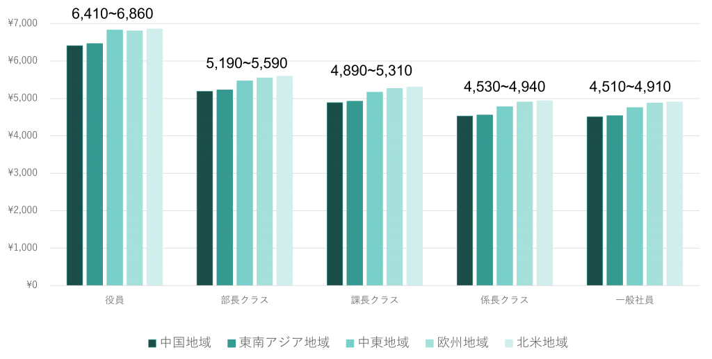 また、出張手当は役職で異なり、部長クラスで5,190~5,590円程度、一般社員で4,510~4,910円程度になります。
