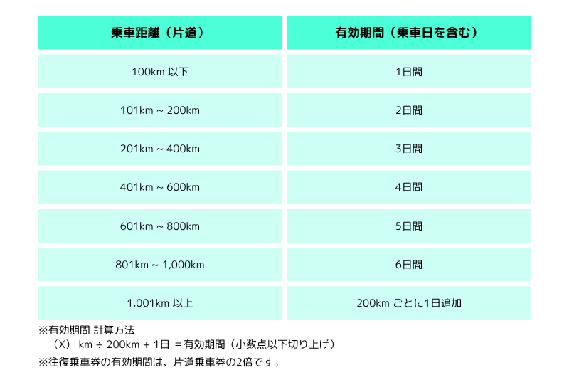 乗車券の有効期間は乗車距離によって決まります。