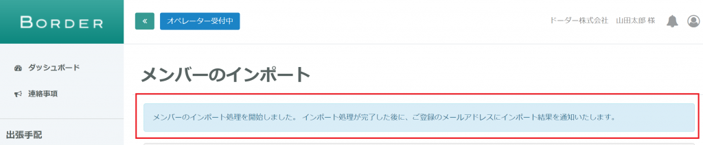 その後「インポートするメンバー情報を確認」から入力内容に誤りがないか確認し、「インポートを開始する」より、インポートを実施します。クリックした後は、画面が遷移し「メンバーのインポート処理を開始しました」と表示されます。
