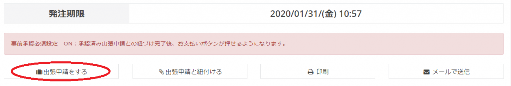 新規手配依頼後オペレーターより見積書を提示されたら、見積書上部の「出張申請をする」をクリックします。